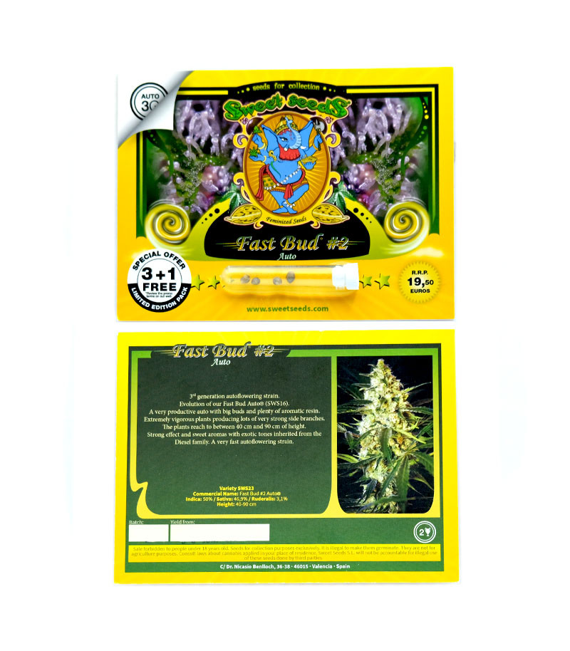 Fast Bud #2 Auto ("Быстрый бутон") – автоцветущая высокопроизводительная версия сорта Fast Bud с преобладанием свойств сативы в своем составе, отличающаяся красивыми крупными соцветиями и многочисленными мощными и высокими боковыми побегами.