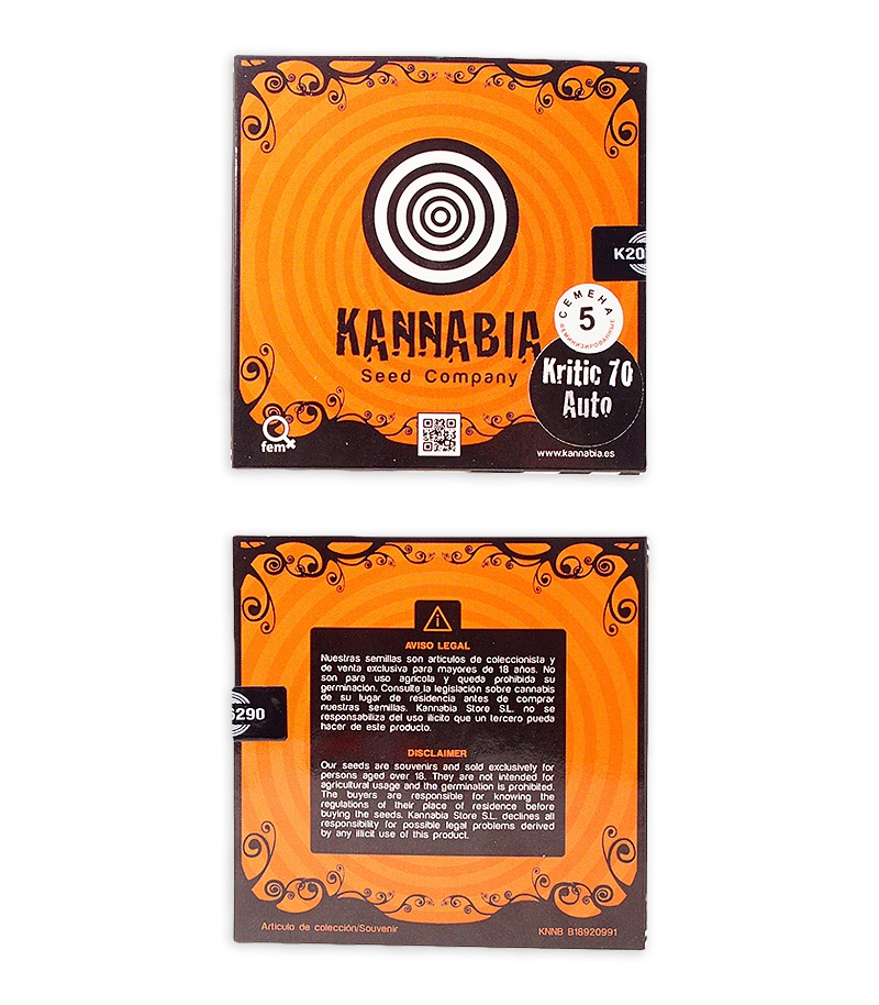 Kritic 70 Auto («Критик») - автоцветущая версия одного из лучших сортов компании Dinafem, созданная в Cannabia. Число 70 в названии сорта говорит о том, что именно за такое количество дней растение полностью завершает свой жизненный цикл.