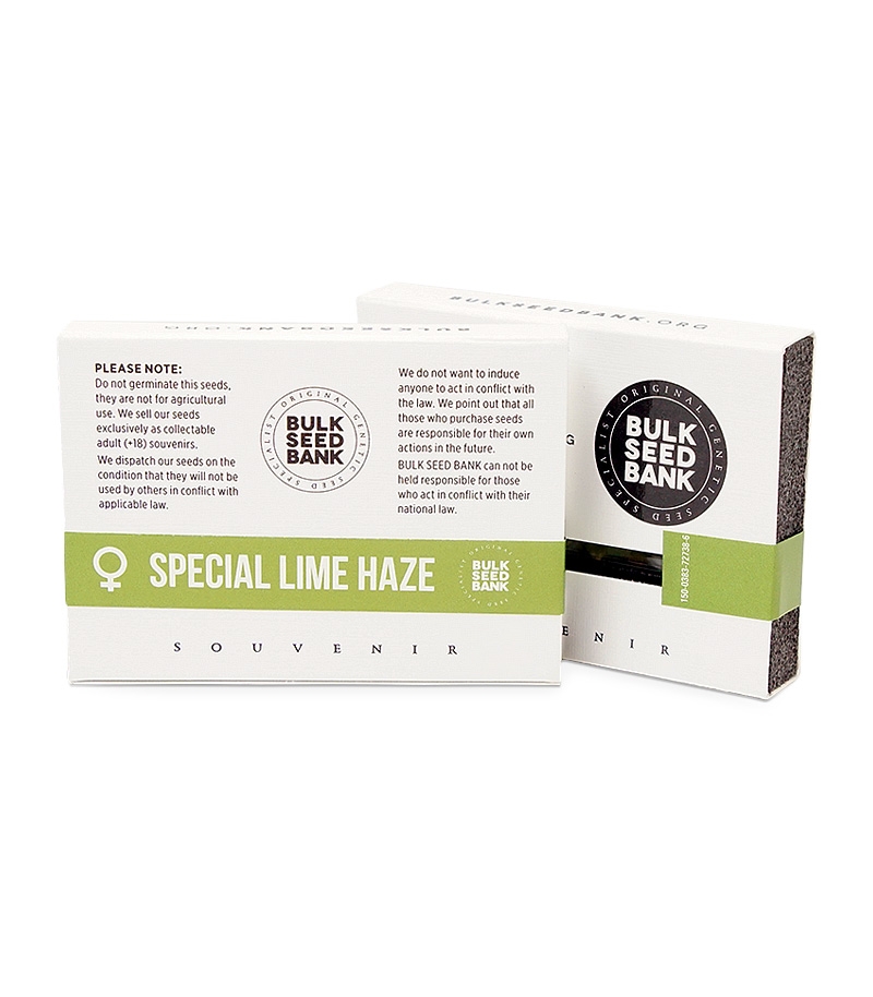 Сорт конопли Special Lime Haze от Bulk Seed Bank описывается как мощный, урожайный гибрид, имеющий необычные вкусовые и ароматические качества. Аромат славится цитрусовыми лимонными нотами, которые граничат со сладостью. Вкус отличается насыщенностью и интенсивностью. Эффект тонизирующий и бодрящий.